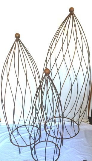 Rundes Rankenset mit Kugel oben an der Spitze // Größen: Höhe 150,130 und 100 cm // Massives Volleisen // Rost: Metall nach Rostverfahren.