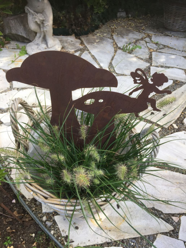 Pilzgruppe mit 1 Elfe, D33 H83 cm